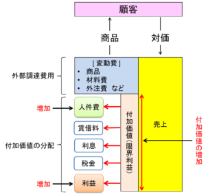 生産分析 付加価値の分配 人件費増加と利益増加