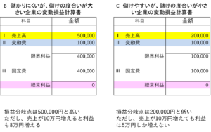 損益分岐点分析 変動費比率と固定費比率の変動損益計算書